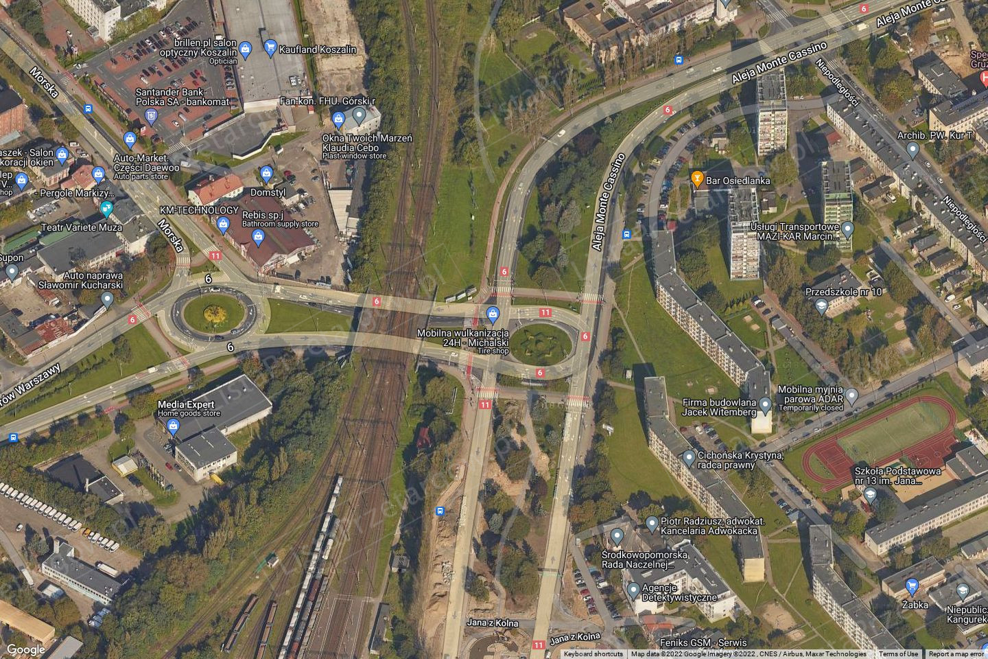 i obiektów produkcyjnych w trakcie budowy oraz nowo wybudowanej drogi S6. Wjazd do działki odbywa się od