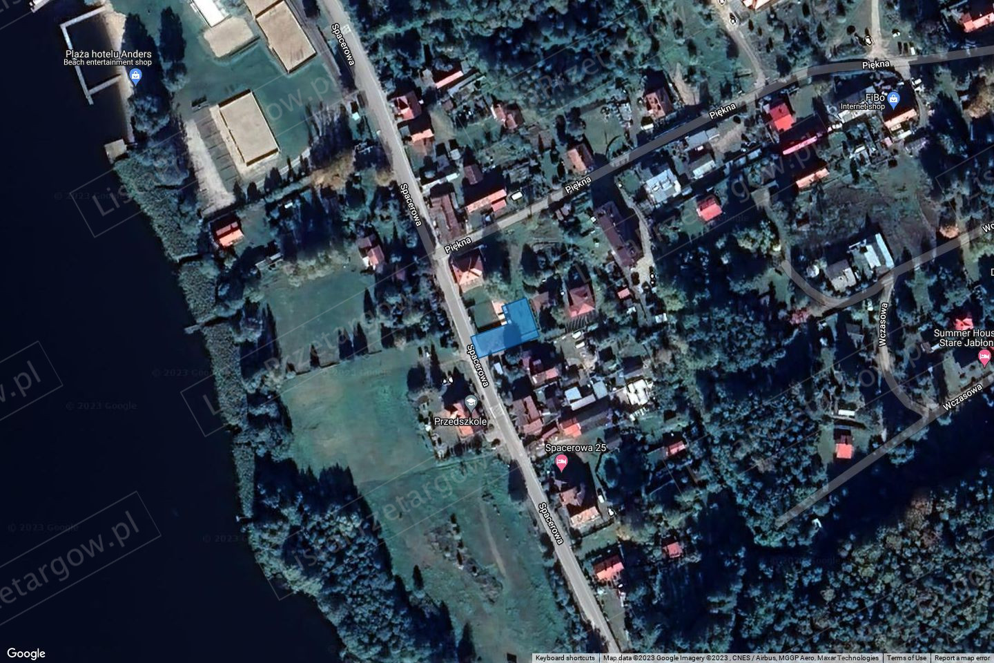 Przeznaczone do sprzedaży działki nr 166/91 i nr 166/92, położone są w południowo-wschodniej części wsi Stare Jabłonki, w pobliżu zbiegu ulicy Pięknej oraz ulicy Spacerowej. W odległości ok. 100 m od jeziora Szeląg Mały oraz przedszkola samorządowego. W sąsiedztwie działki znajduje się zabudowa mieszkaniowa. Działki o łącznej powierzchni 2082 m2 i nieregularnym kształcie. Przez działki przechodzą sieci uzbrojenia technicznego: elektryczna niskiego i wysokiego napięcia, ciepłownicza niskiego ciśnienia, wodociągowa oraz kanalizacyjna. Sieci w znacznym stopniu ograniczają możliwości inwestycyjne nieruchomości. Działka położona na terenie o średnich warunkach geotechnicznych. Wszelkie roboty ziemne należy prowadzić pod nadzorem geotechnicznym. Działki sklasyfikowane jako Bi.