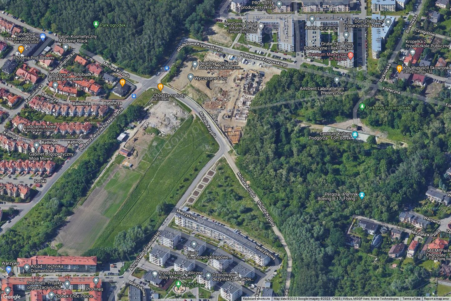 II). prawa własności niezabudowanych działek gruntu numer 96/328, 96/394, 96/395, 96/396, 96/398, o łącznej powierzchni 0,3372 ha, położonych w Krakowie przy ulicy Michała Korpala, dla których to działek Rejonowy dla Krakowa - Podgórza, IV Wydział Ksiąg Wieczystych prowadzi księgę wieczystą KW nr XXXX/XXXXXXXX/X;