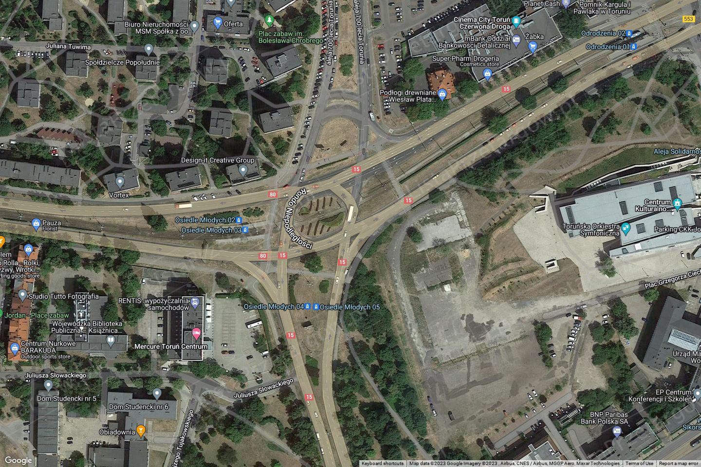 Przedmiotowy teren o łącznej powierzchni 7,09 ha został rozdzielony na pięć kompleksów działek, z których cztery posiadają dostęp do drogi publicznej, ul. P. Jonssona, wydzieloną drogą wewnętrzną stanowiącą prawo użytkowania wieczystego gruntu przysługujące PGE Toruń S.A. Udział w działce stanowiącej drogę również stanowi przedmiot sprzedaży. Piąty kompleks posiada bezpośredni dostęp do drogi publicznej, ul. Szosa Bydgoska, na podstawie służebności gruntowych.