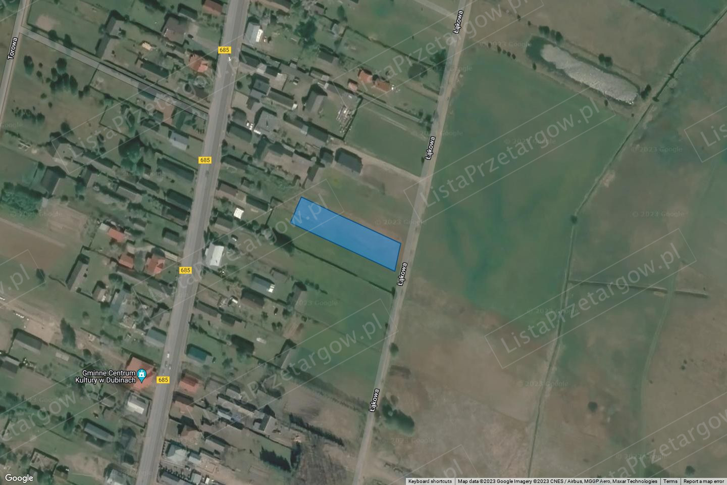 Nieruchomość niezabudowana o kształcie prostokąta i regularnych granicach, porośnięta trawą. Zlokalizowana przy ul. Łąkowej w Dubinach uzbrojonej w infrastrukturę techniczną: elektryczną, wodociągową i kanalizacyjną tłoczną. Dojazd do nieruchomości drogą o nawierzchni asfaltowej.