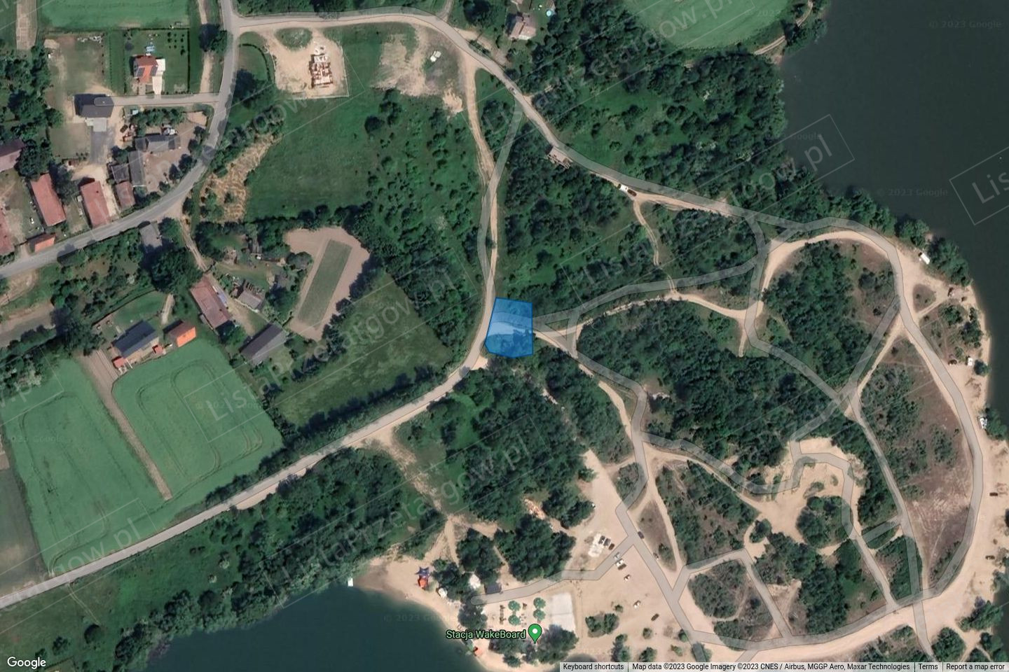 zbiornika wodnego (ok. 120 m) . Działki są nieogrodzone, porośnięte roślinnością trawiastą, chwastami