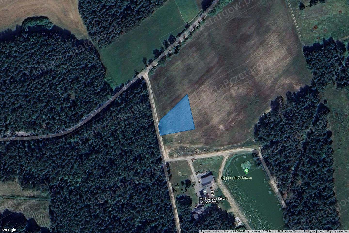5. Opis nieruchomości: Nieruchomość położona jest poza zwartą zabudową wsi Żukówko w gminie Parchowo. Bezpośrednie otoczenie nieruchomości stanowią tereny niezabudowane – tereny leśne oraz grunty orne, w dalszej odległości sporadyczna zabudowa mieszkalna i gospodarcza, stawy, jeziora, lasy. Działka posiada bezpośredni dostęp do drogi publicznej – zjazd z drogi o nawierzchni asfaltowej i krótki odcinek drogi gruntowej utwardzonej tzw. płytami jumbo. Działka płaska bez pochyleń terenu, porośnięta niską roślinnością polną. Istnieje możliwość uzbrojenia terenu.