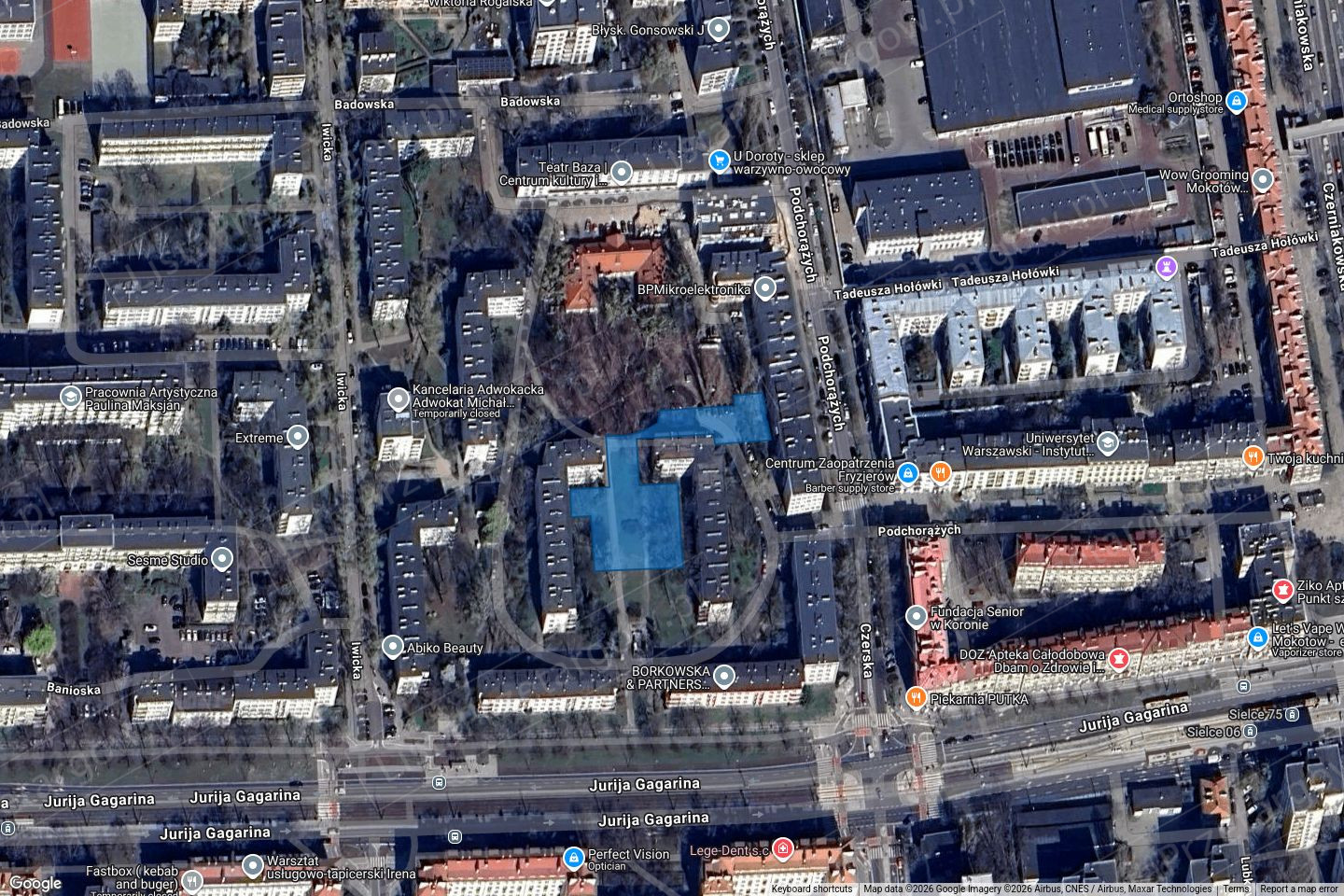 Nieruchomość gruntowa jest położona w Warszawie, w Dzielnicy Mokotów w rejonie Sielce. W odległości ok. 650 m znajdują się Łazienki Królewskie. Bezpośrednie sąsiedztwo nieruchomości stanowią budynki wielorodzinne. Nieruchomość oznaczona jest w ewidencji gruntów jako działka ewidencyjna nr 12/11 o powierzchni 0,2077 ha w obrębie 1-03-02 Dzielnicy Mokotów m. st. Warszawy.