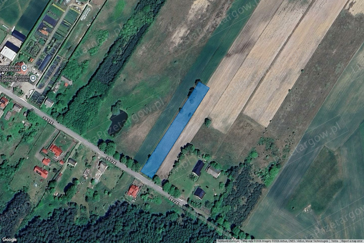 Przedmiotem drugiej licytacji komorniczej jest udział 1/2 w niezabudowanej działce gruntu o powierzchni 3006 m², położonej w okolicy dużego kompleksu leśnego i luźnej zabudowy jednorodzinnej. Nieruchomość ma prostokątny kształt (szerokość ok. 20 m) i posiada dogodny dojazd z utwardzonej drogi gminnej.