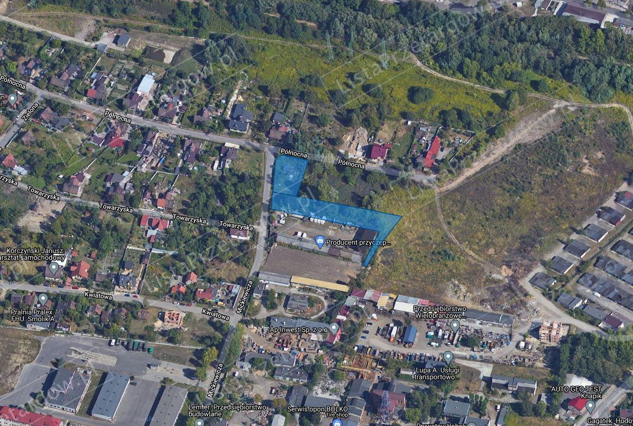 Opis nieruchomości: nieruchomość gruntowa niezabudowana położona przy ul. Północnej i ul. Mickiewicza, obecnie większość terenu jest zaniedbana, zaśmiecona i nieuporządkowana. Obrys granic działki tworzy dość regularny kształt zbliżony do trapezu, przy czym działka nr 271/134 obejmuje wschodnią granicę sąsiedniej działki nr 235/134. Na nieruchomości znajdują się pozostałości murów i fundamentów budynków, bloki betonowe, śmieci i odpady komunalne. Teren, na którym usytuowana jest nieruchomość, znacznie zróżnicowany wysokościowo, ze spadkiem w kierunku ul. Północnej. Skomunikowanie nieruchomości należy przewidzieć do drogi publicznej ul. Mickiewicza poprzez zjazd z drogi po uzgodnieniu z MZDiM. Nieruchomość jest porośnięta roślinnością nieuporządkowaną.