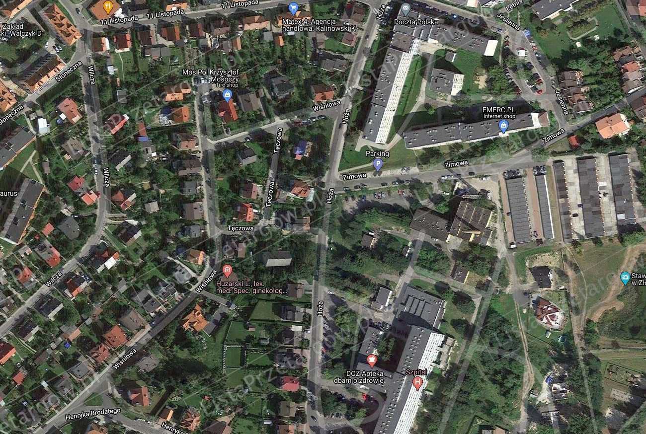 Położenie i opis nieruchomości: nieruchomość gruntowa niezabudowana oznaczona geodezyjnie jako działka nr 338/2 o powierzchni 0,0533 ha położona w obrębie 8 miasta Złotoryjaprzy skrzyżowaniu ul. Hożej i ul. Lubelskiej. Działka jest w miarę płaska o kształcie zbliżonym do trapezu, nieogrodzona, trawiasta. Przez działkę przebiega gazociąg. Wokół znajdują się osiedla domków jednorodzinnych. Dwie granice działki bezpośrednio sąsiadują z chodnikiem, trzecia z ogrodzeniem sąsiedniej działki mieszkaniowej zabudowanej. Czwarta granica sąsiaduje z terenem trawiastym, na którym znajduje się pomnik.