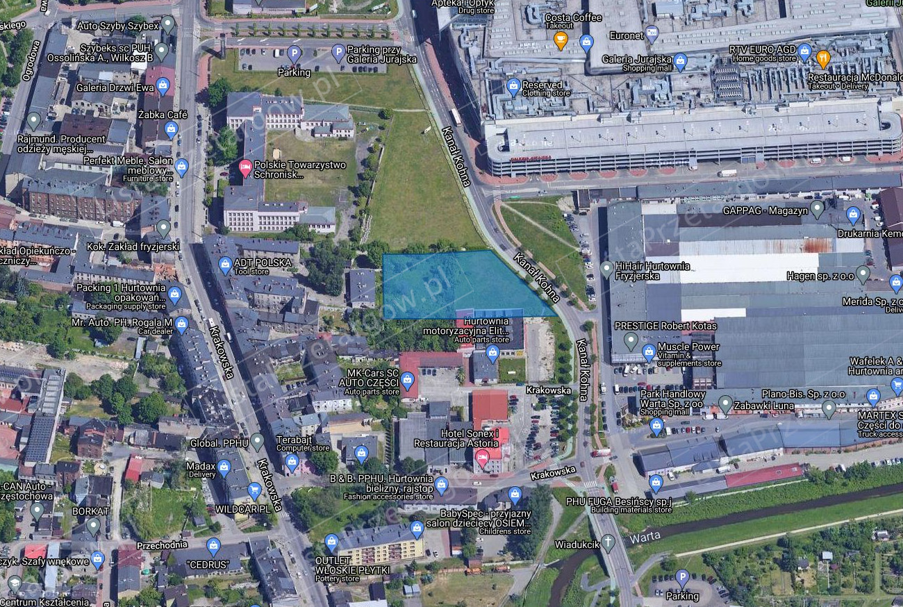 w Częstochowie przy ul. Kanał Kohna, oznaczona jako działka nr 10/4 w obrębie 187 o pow. 0,3880 ha, uregulowana w księdze wieczystej