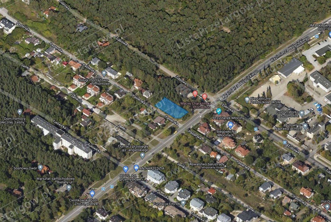Przedmiotem przetargu jest nieruchomość gruntowa niezabudowana, położona w Warszawie w dzielnicy Bielany przy ul. Pasterskiej, stanowiąca własność miasta stołecznego Warszawy, uregulowana w księdze wieczystej KW nr XXXX/XXXXXXXX/X, oznaczona jako działka ewidencyjnanr 8/3 o powierzchni 970 m² w obrębie 7-10-01. Nieruchomość nie posiada bezpośredniego dostępu do drogi publicznej. Sprzedaż nieruchomości nastąpi wraz z odpłatnym ustanowieniem, za jednorazowym wynagrodzeniem, służebności gruntowej przejścia i przejazdu na nieruchomości, oznaczonej jako działka ewidencyjna nr 8/4 o powierzchni 86 m² w obrębie 7-10-01, położonej w Warszawie w dzielnicy Bielany przy ul. Pasterskiej, stanowiącej własność miasta stołecznego Warszawy, uregulowanej w księdze wieczystej KW nr XXXX/XXXXXXXX/X, na rzecz każdoczesnego właściciela nieruchomości przy ul. Pasterskiej (działka ew. nr 8/3 w obrębie 7-10-01). Służebność będzie wykonywana na gruncie o powierzchni 43 m².
