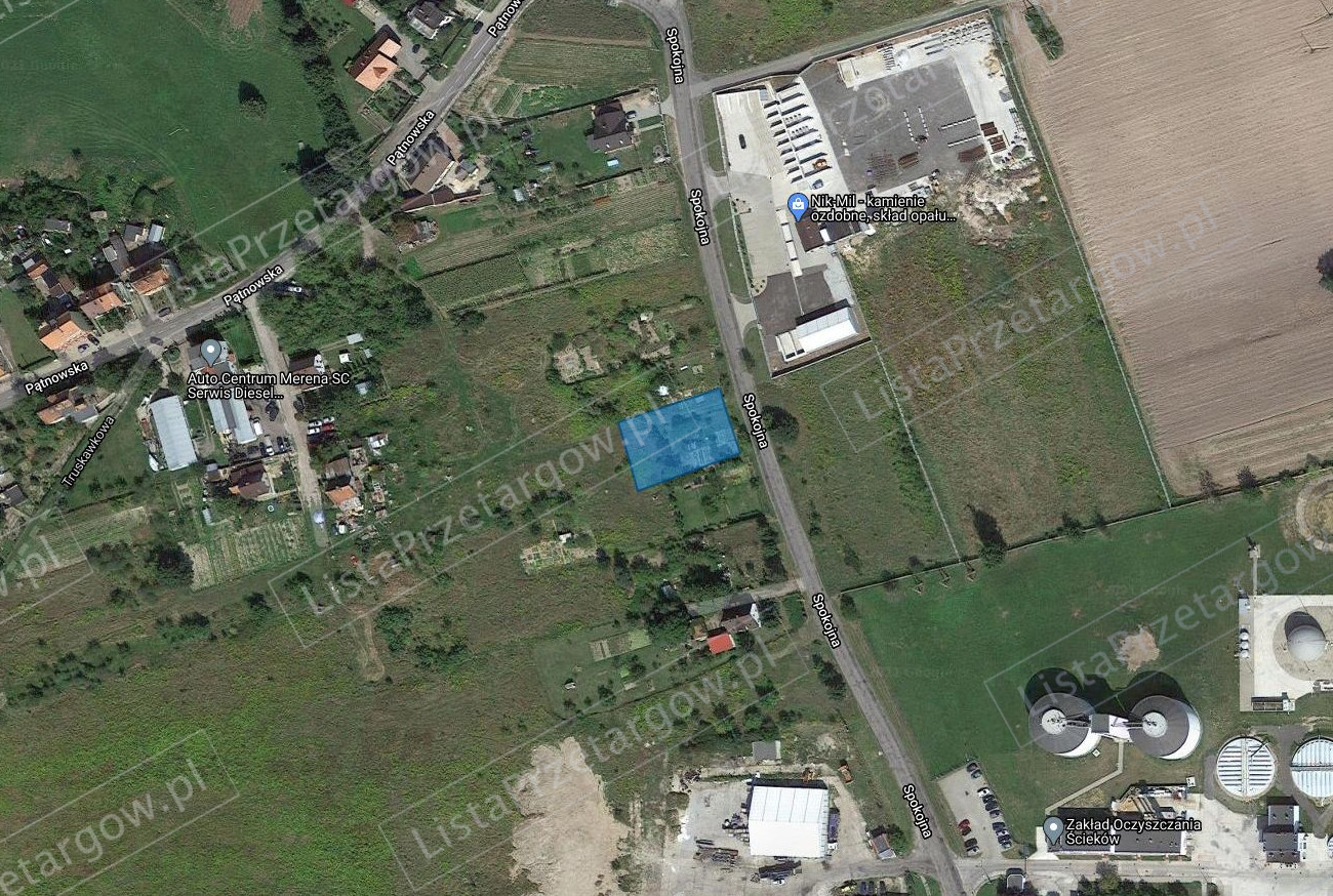 Nieruchomość niezabudowana o kształcie regularnym zbliżonym do prostokąta, zlokalizowana w peryferyjnej części miasta ok. 4 od centrum. W sąsiedztwie znajdują się tereny niezabudowane przeznaczone pod zabudowę oraz dominuje zabudowa mieszkalna jednorodzinna oraz usługowa. W niedalekiej odległości usytuowana jest oczyszczalnia ścieków. Dojazd do działki realizowany jest drogą asfaltową - ulica Spokojna. Nieruchomość ogrodzona od strony wschodniej, południowej i północnej ogrodzenie tymczasowe do osunięcia. Teren działki plaski użytkowany wcześniej jako ogródek działkowy, porośnięty drzewami owocowymi, roślinnością trawiastą oraz krzewami ozdobnymi. Na działce stoi nie związany z gruntem domek drewniany do usunięcia.